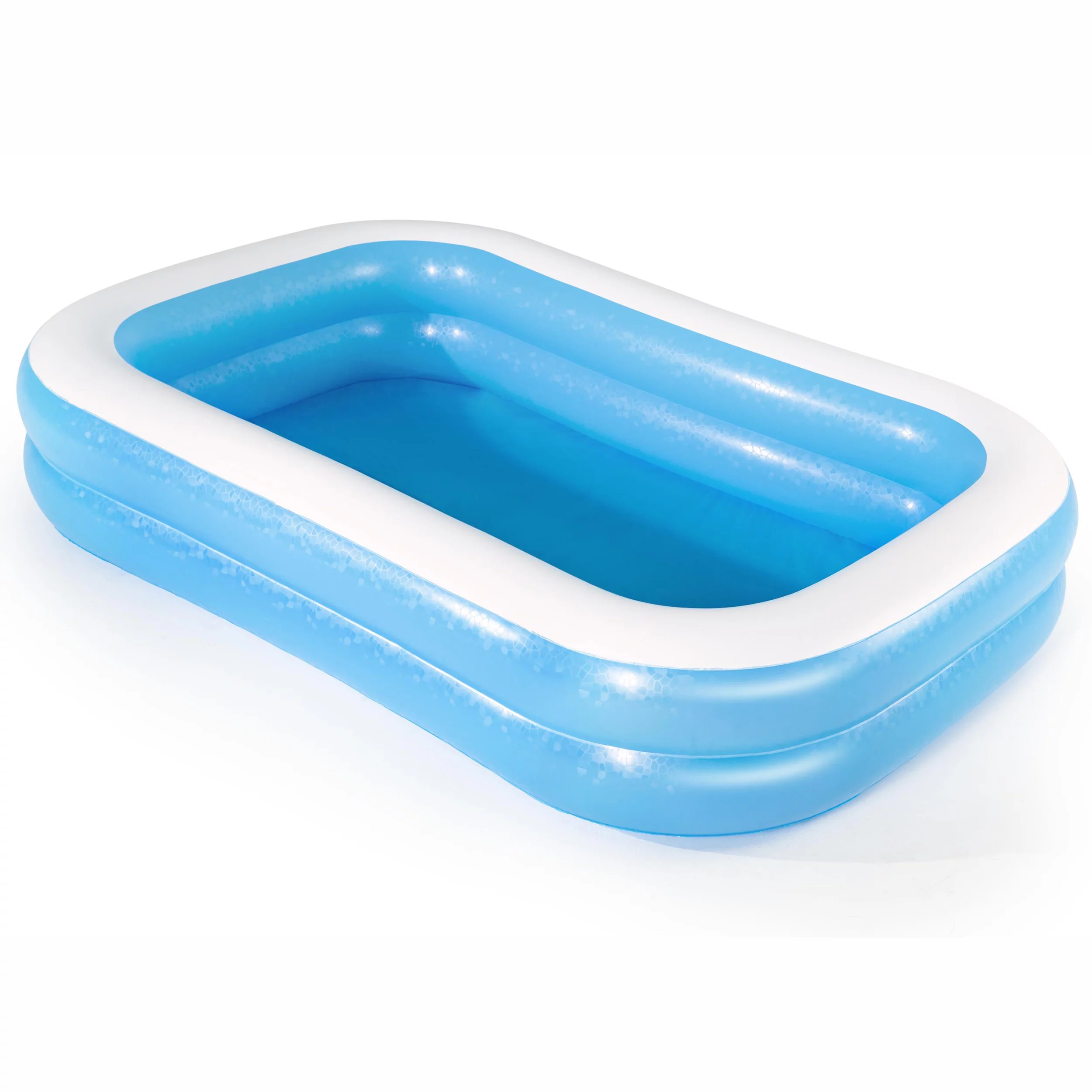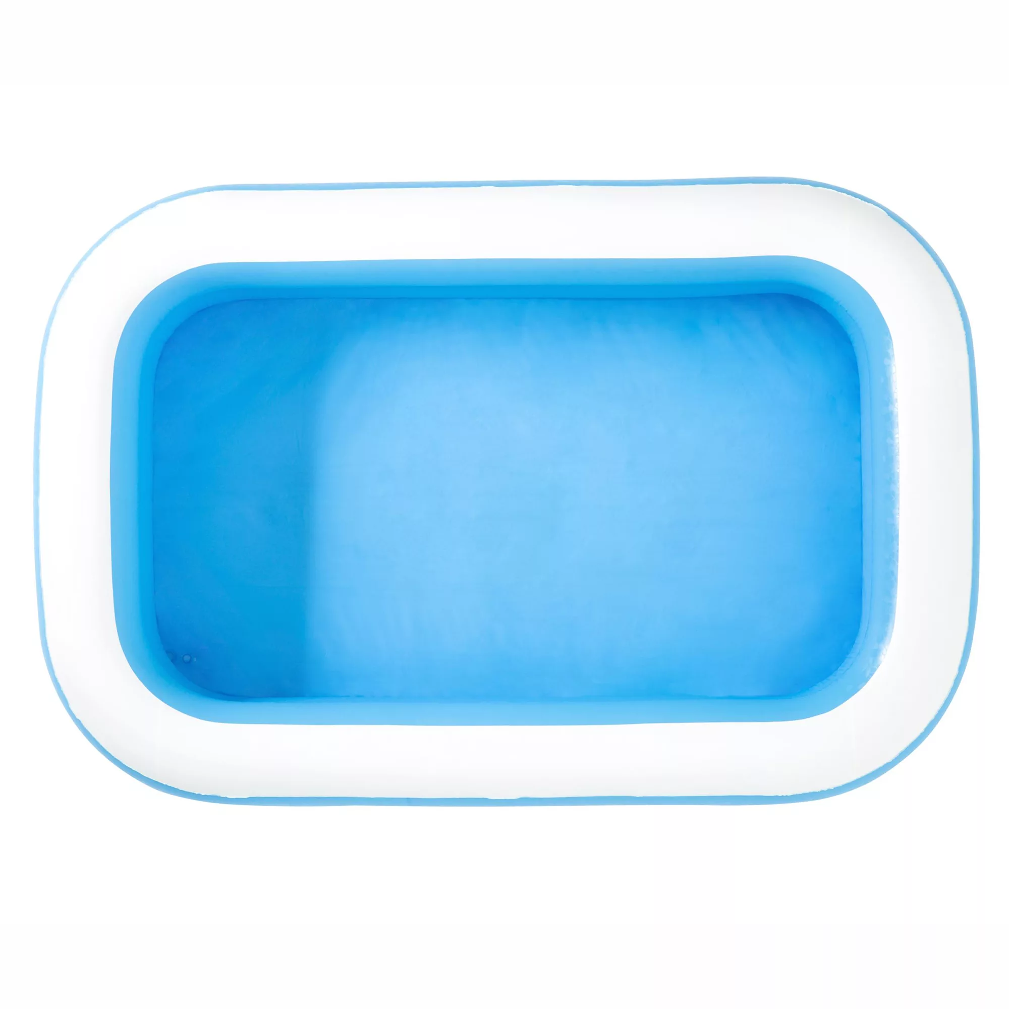 Designed to get kids (and adults) moving, grooving and out of the house, the Blue Rectangular Family Pool is quality-tested and puts the focus back on fun! This 8.6′ x 69″ x 20″/2.62m x 1.75m x 51cm rectangular pool is made from sturdy pre-tested vinyl. With extra wide side walls, this pool is great for younger families to splash and play in the sun. And taking it down is a breeze with the easy to use drain valve. Splashing in the sun has never been more fun!