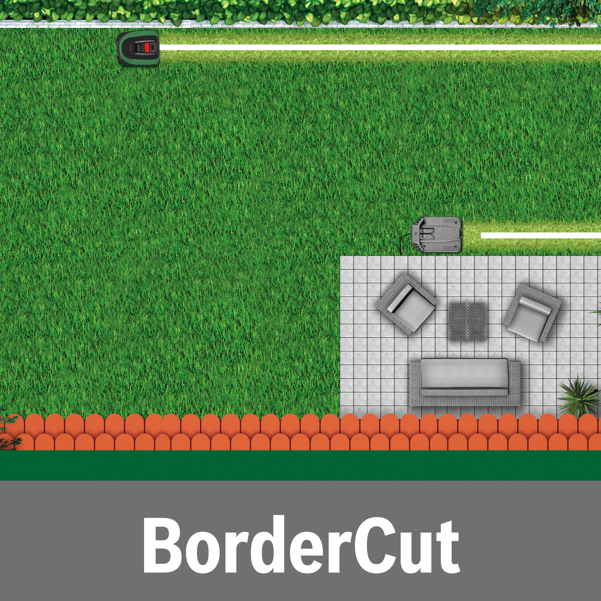 - The Indego S 500 starts every full lawn mowing session with a BorderCut, ensuring a neat finish, right up to the edge of your defined lawn area