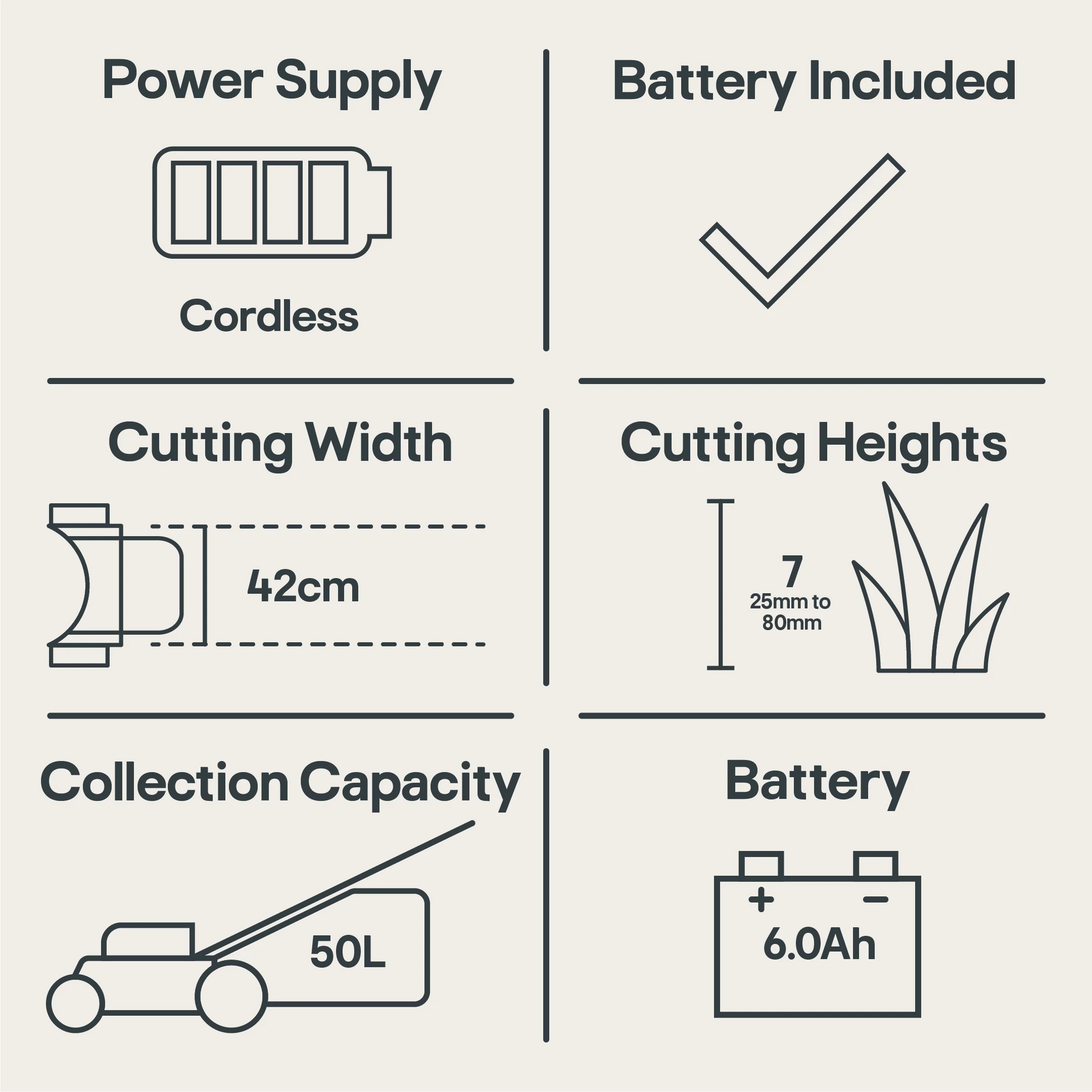 - Purpose- Ideal for cordless mowing of medium to large gardens