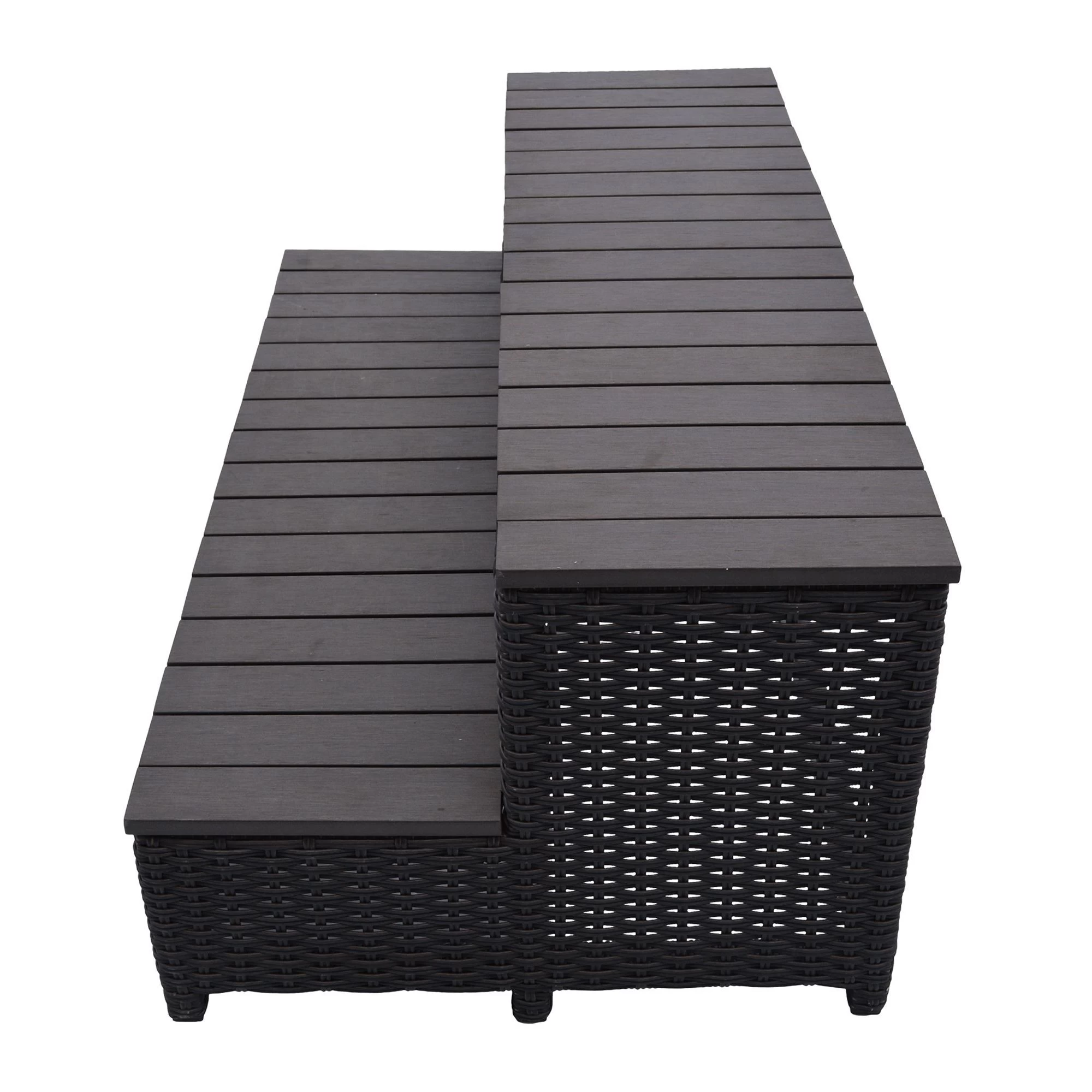 The wicker spa step features double steps constructed of a slip resistant synthetic wood with an attractive wicker rattan finish along the border of the step. Multiple steps can be combined with our square spa surround corner steps to create a wrap around effect around the perimeter of your spa.