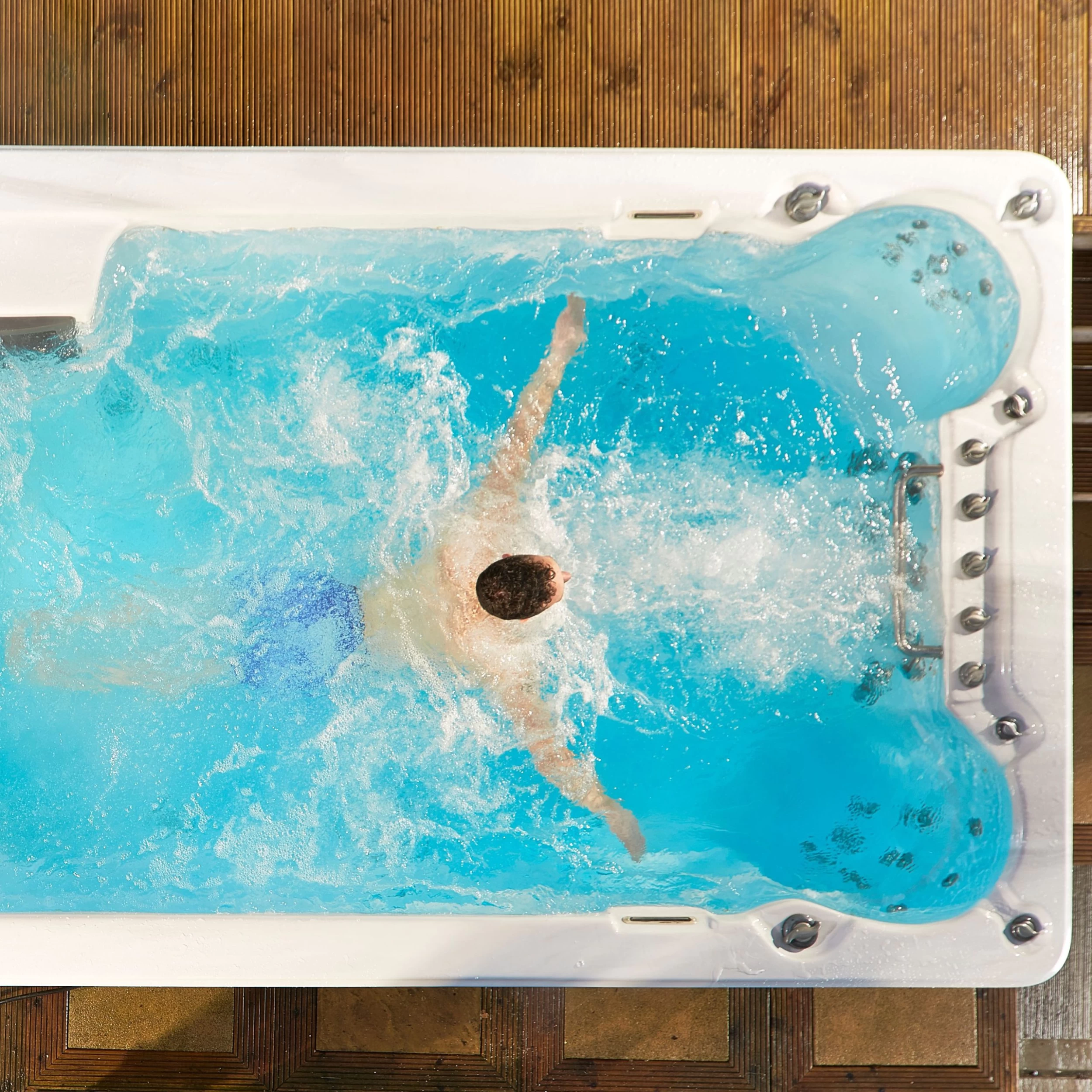 This 17ft swim spa is two in one: a swim spa which can be used for exercise and endurance training and a jet massage area for relaxing all within the privacy of your own home.
