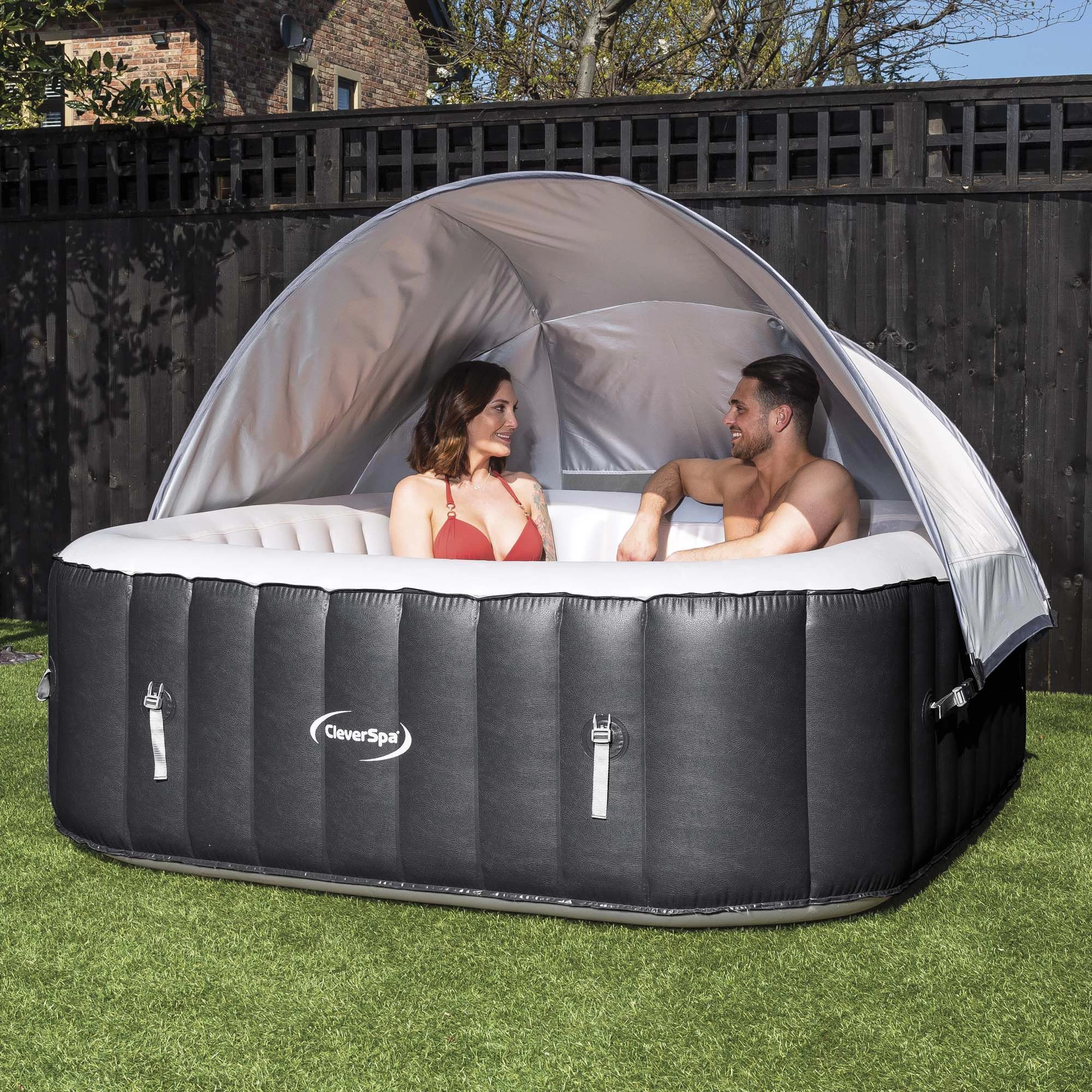 The CleverSpa® Large Canopy is the perfect addition to your CleverSpa® hot tub! It will keep you cool on sunny days with 50+ UPF protection, keep you sheltered from the elements and provide you with a little privacy too!