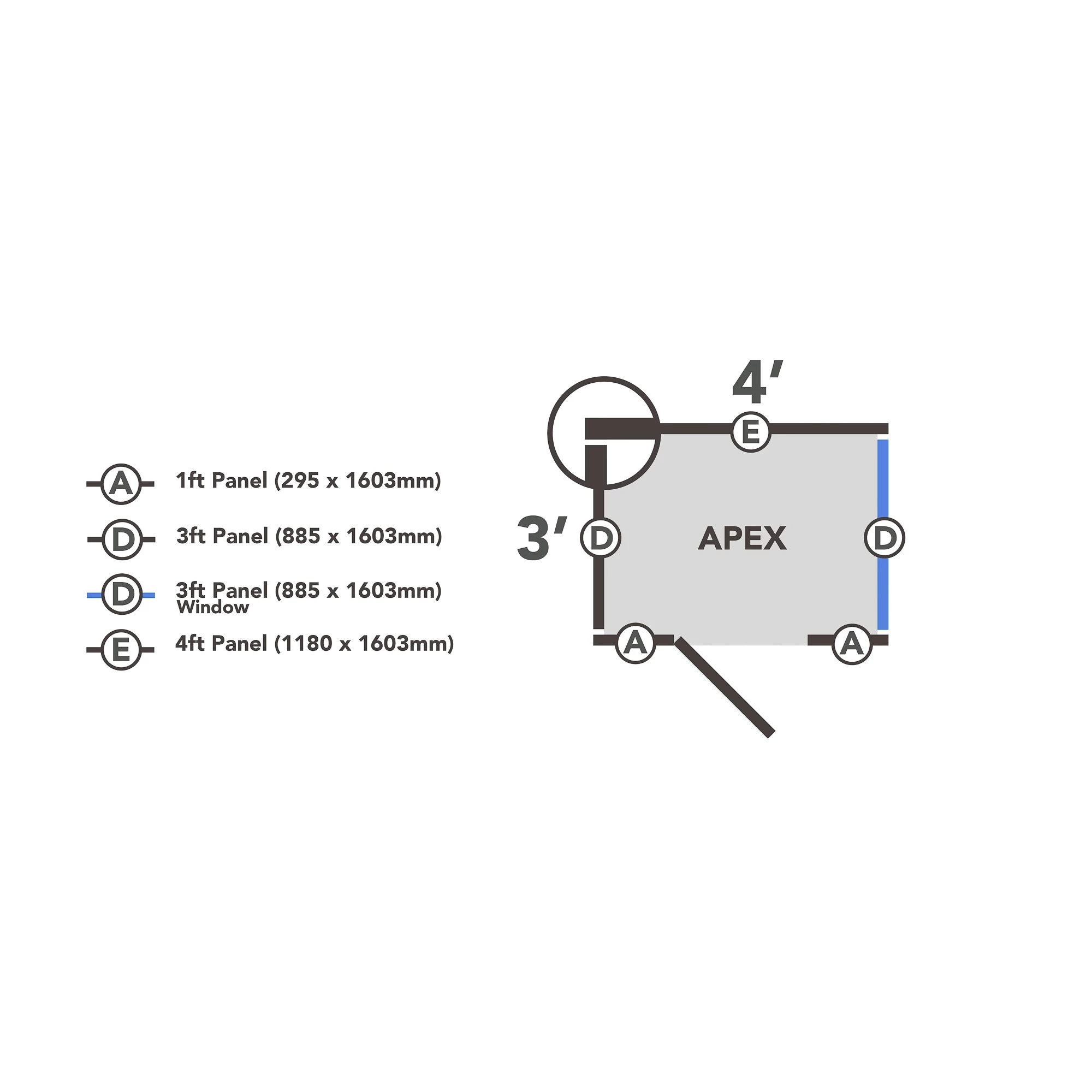 The high quality Dip Treated 4×3 Shiplap Tongue & Groove Apex Shed has a compact design, making it an ideal storage space in small gardens. The shed’s improved design features smaller wall sections, making it easier to handle and assemble. This flexible shed is made up of modular sections where same size panels are interchangeable, this means you can choose which side the window panel goes during assembly and choose whether to have it towards the front or back of the shed. This attractive shed is manufactured from high quality interlocking Shiplap Tongue & Groove boards which have been Dip Treated and guaranteed against rot for 10 years, annual re-treatment is required. The design also incorporates more timber framing than previously, making the shed stronger and more robust. The shed has a Pressure Treated solid timber floor which is ideal storage of heavier items such as lawnmowers or bags of compost. An attractive smooth-planed finial, green mineral felted roof and barge boards finish the look of this shed.