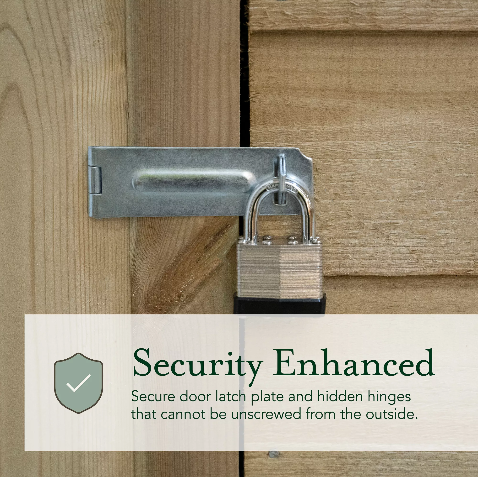 The Forest 4Life Overlap Pressure Treated 6×4 Pent Shed No Windows will help keep your garden clutter free and offers a secure space for you to store garden equipment and is a great storage solution for all types of gardening equipment. The pent roof style is perfect for situating against a back wall or fence.