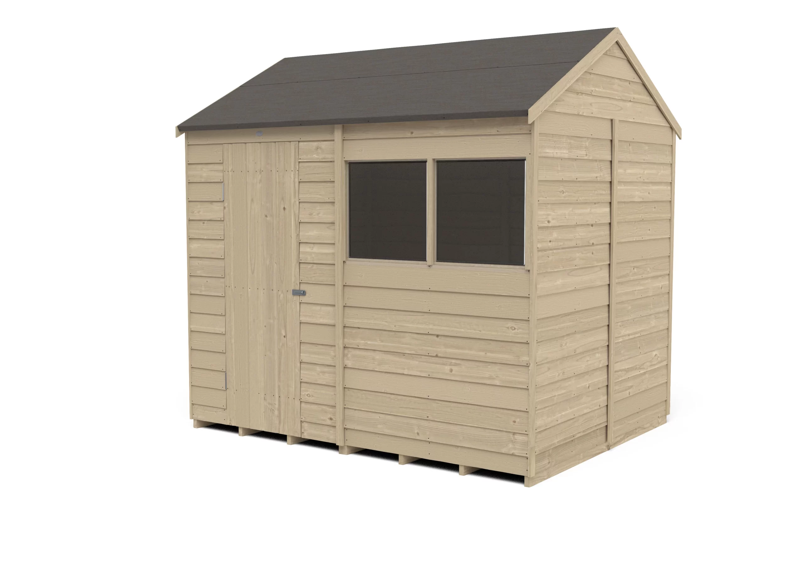 The Overlap Pressure Treated 8×6 Reverse Apex Shed from Forest is an excellent storage solution. The design makes it ideal for positioning against a wall and allows the interior space to be used to its greatest storage potential, with generous headroom and plenty of light.