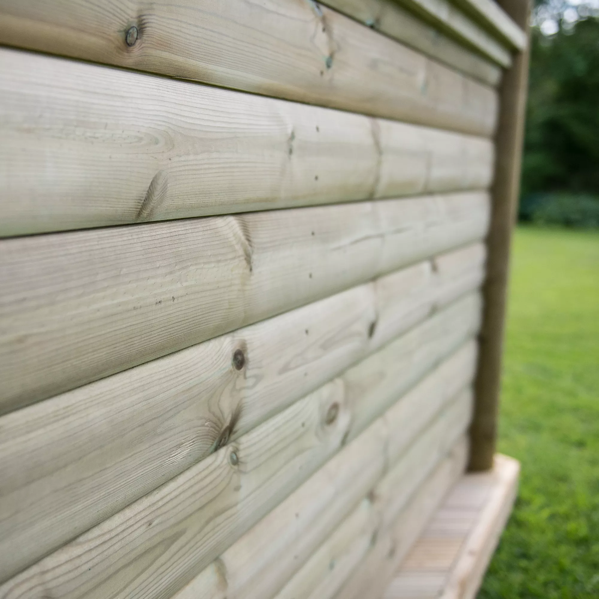 The 3m Hexagonal Wooden Garden Gazebo with Timber Roof from Forest is the smallest in the range, ideal for gardens with limited space. Its compact size will still create a striking feature in your garden. This Gazebo comes with just the decked base so you can furnish to your taste. A furnished version is also available which includes a custom-made table, wooden bench seats and cushions which can seat up to 10 adults or 12 children. Side curtains made from quality outdoor canvas (available in a choice of 3 colours; green, terracotta or cream) are also available as an optional extra.