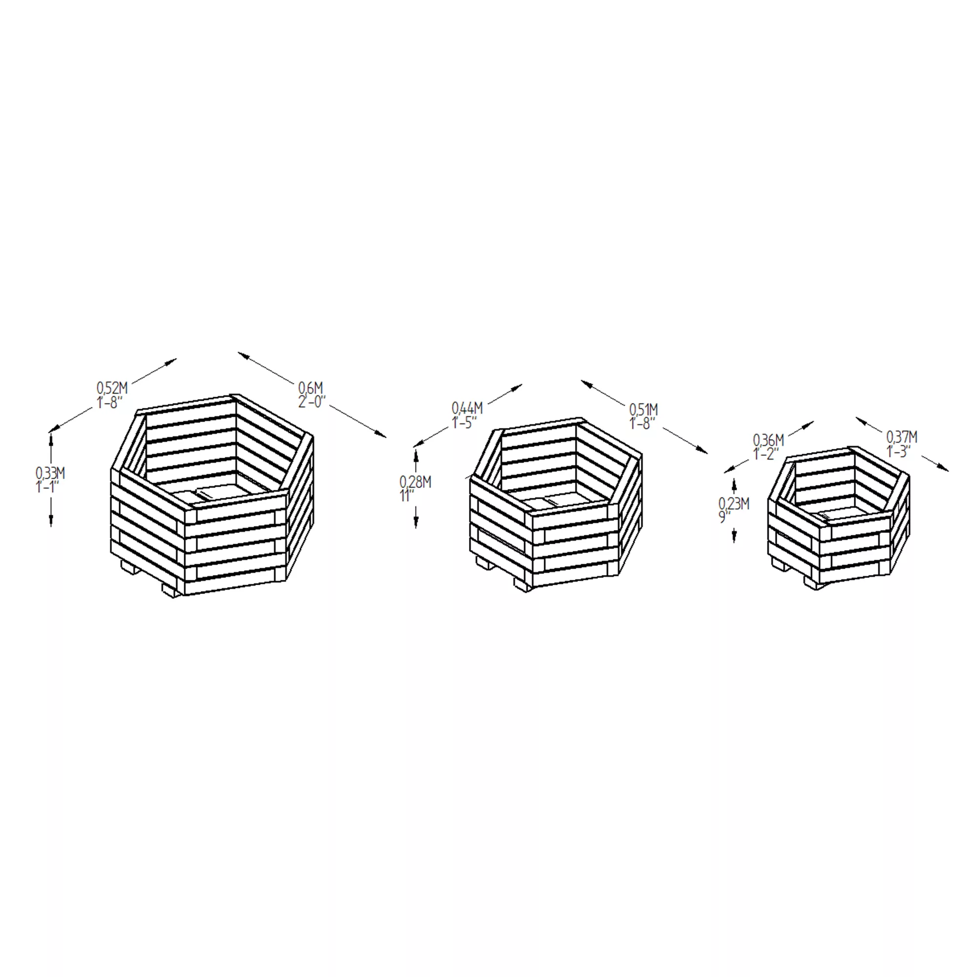 Forest Garden York Wooden Hexagonal Planter, Pack Of 3