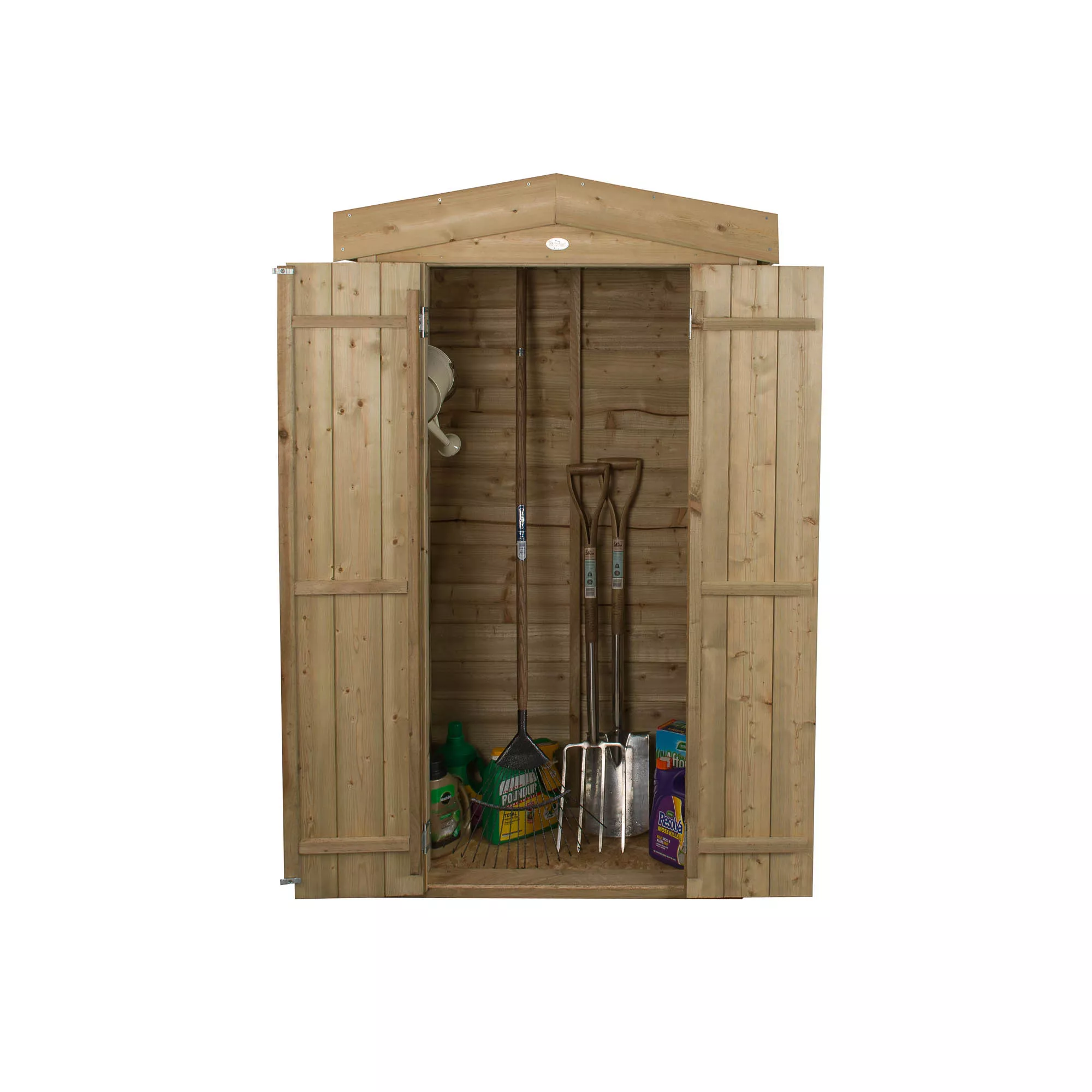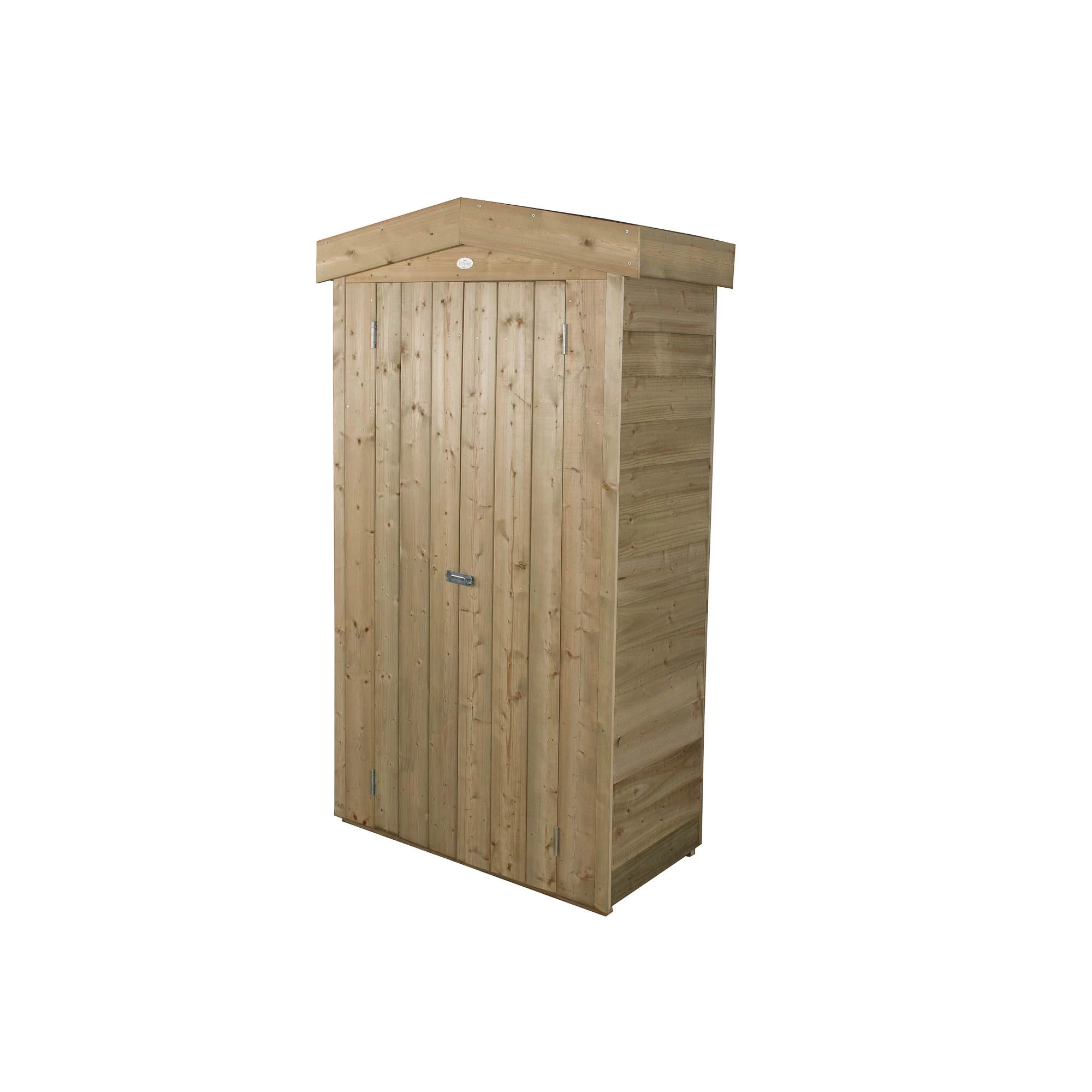 This Tall Garden Store from Forest provides 750 litres of storage capacity in a small area. With a roof height of just under six feet it’s perfect for keeping long handled gardening tools, children’s toys or folding furniture neat and tidy. The relatively small footprint means it is ideal for positioning against a wall or fence and will blend attractively into any garden. The store is made from traditional Pressure Treated overlap panels and finished with smooth-planed barge boards.