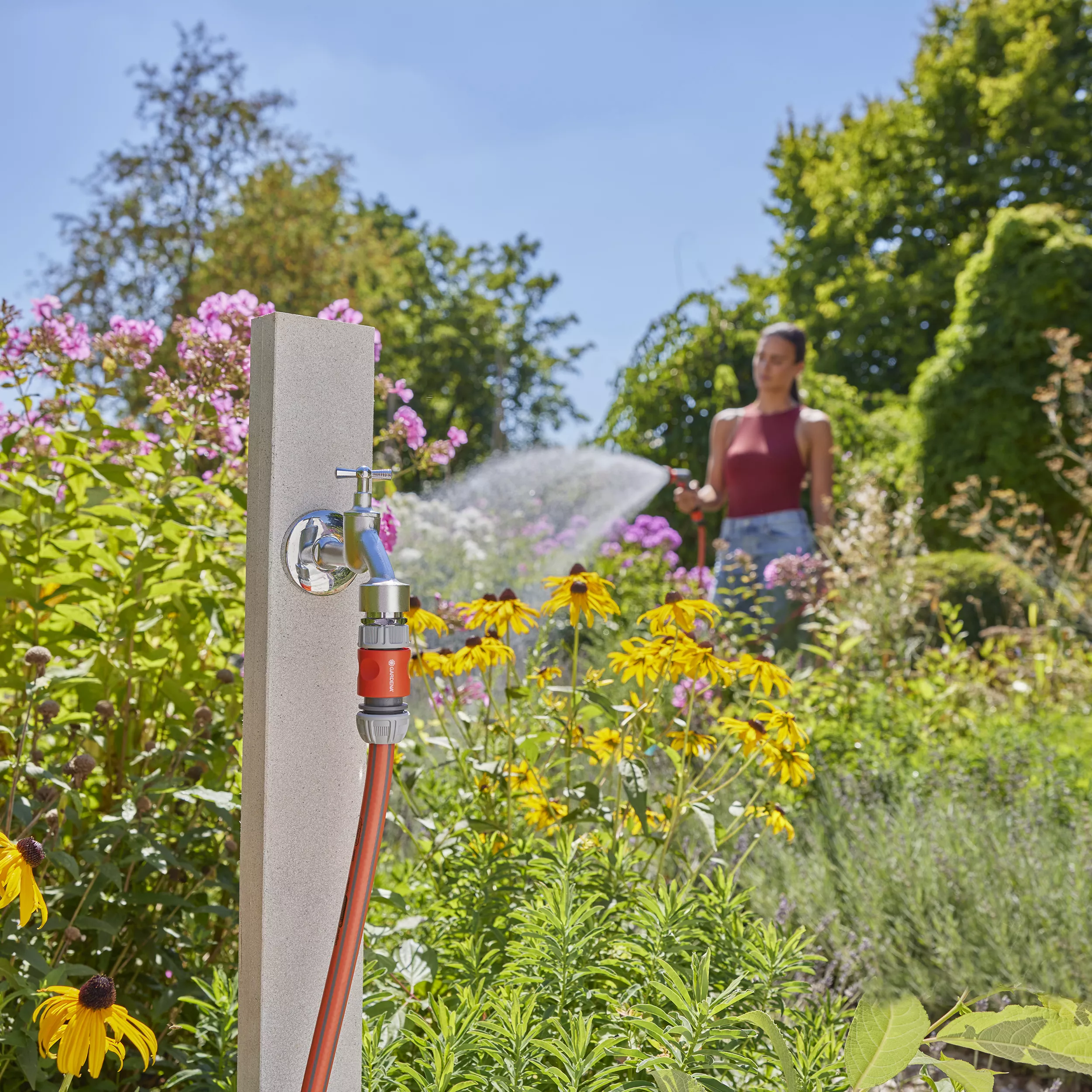 - Complete watering set for fast tap and hose connection