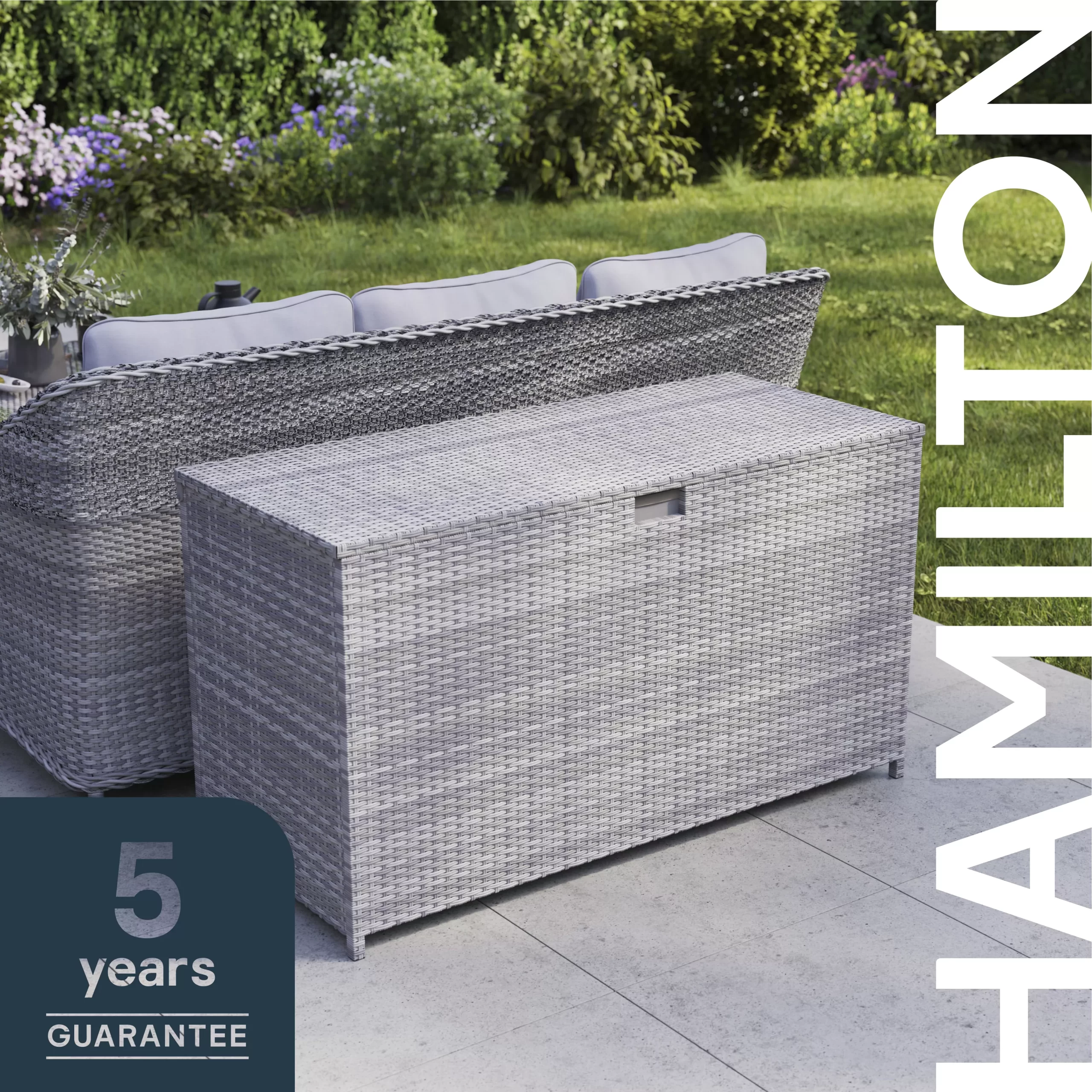 Sleek, simple and helps you keep your outdoor space organised with ease! The Hamilton storage box contains room for keeping all your sofa/seating essentials together and protected from the elements when not in use. This storage box will match effortlessly with existing Hamilton garden furniture sets and help preserve the quality of your cushions for use season after season.