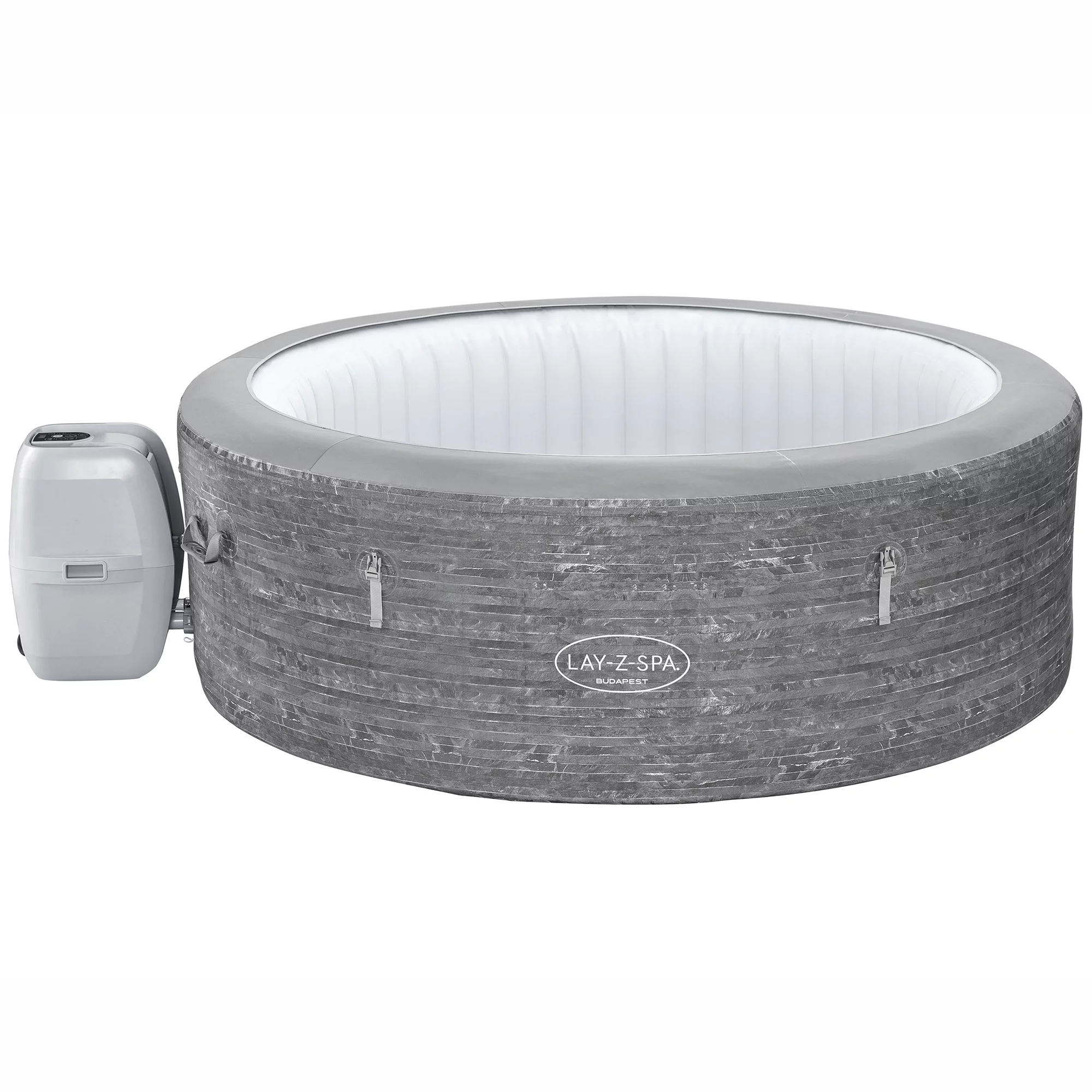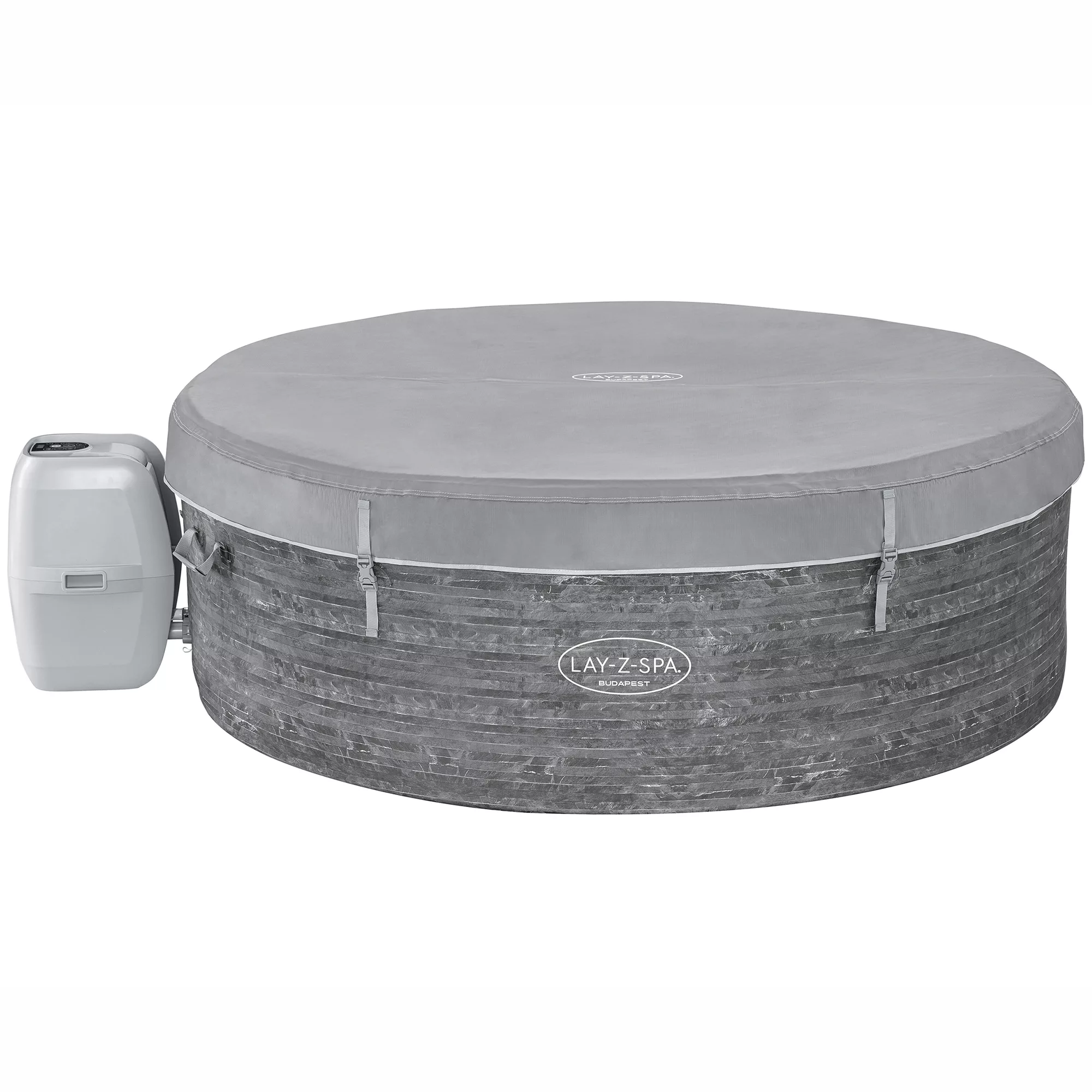 The Lay-Z-Spa® Budapest AirJet™ is all about energy efficiency and care-free relaxation thanks to its integrated heat-saving EnergySense™ insulated liner and top cover making it up to 40% more energy efficient than comparable inflatable hot tubs. Up to 6 people can enjoy the invigorating, all surrounding 140 AirJet™ massage system and make use of the 2-level massage intensity feature that lets you drift in a cloud of warm bubbles. The WiFi connection allows you to control the integrated features from a smart device so the Budapest AirJet™ can be ready to jump into when you get home. Whether a spa session for two or a gathering of friends, this Lay-Z-Spa® is completed with a 40°C rapid heating system, energy-saving timer, Freeze Shield™ technology for use all year, adjustable digital control panel, ChemConnect™ dispenser for easy water maintenance, insulating lid and cover with safety clips. Everything you need except chemicals is included in the box. We recommend ClearWater® Chemicals.
