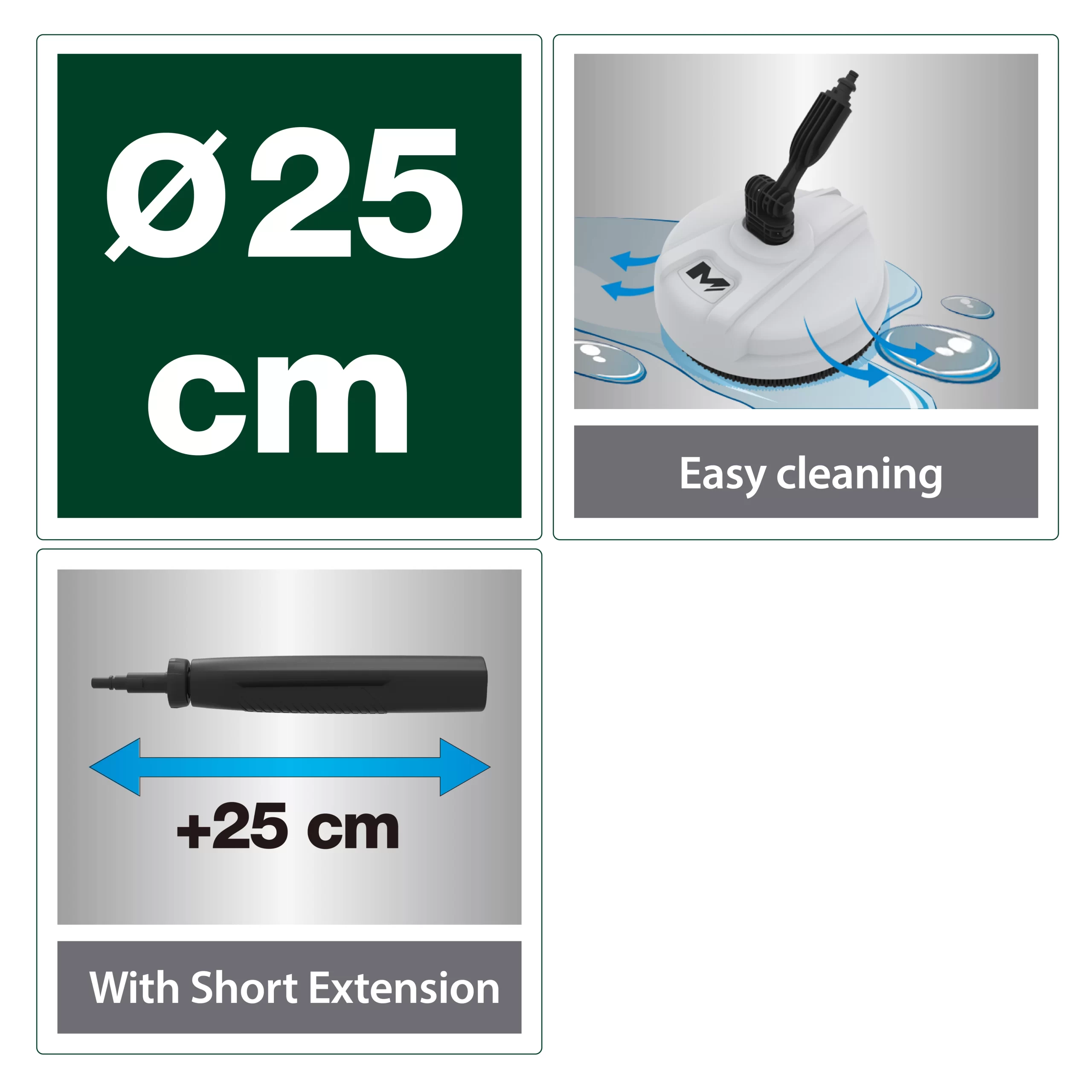 - Includes rotating patio brush for quick and easy cleaning of paths and patios that helps to lift dirt and grime