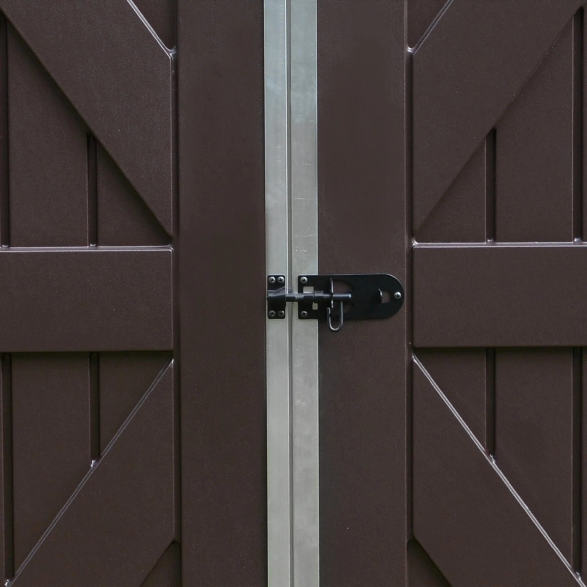 - Lockable wide double door latches for extra privacy and safety (lock sold separately)