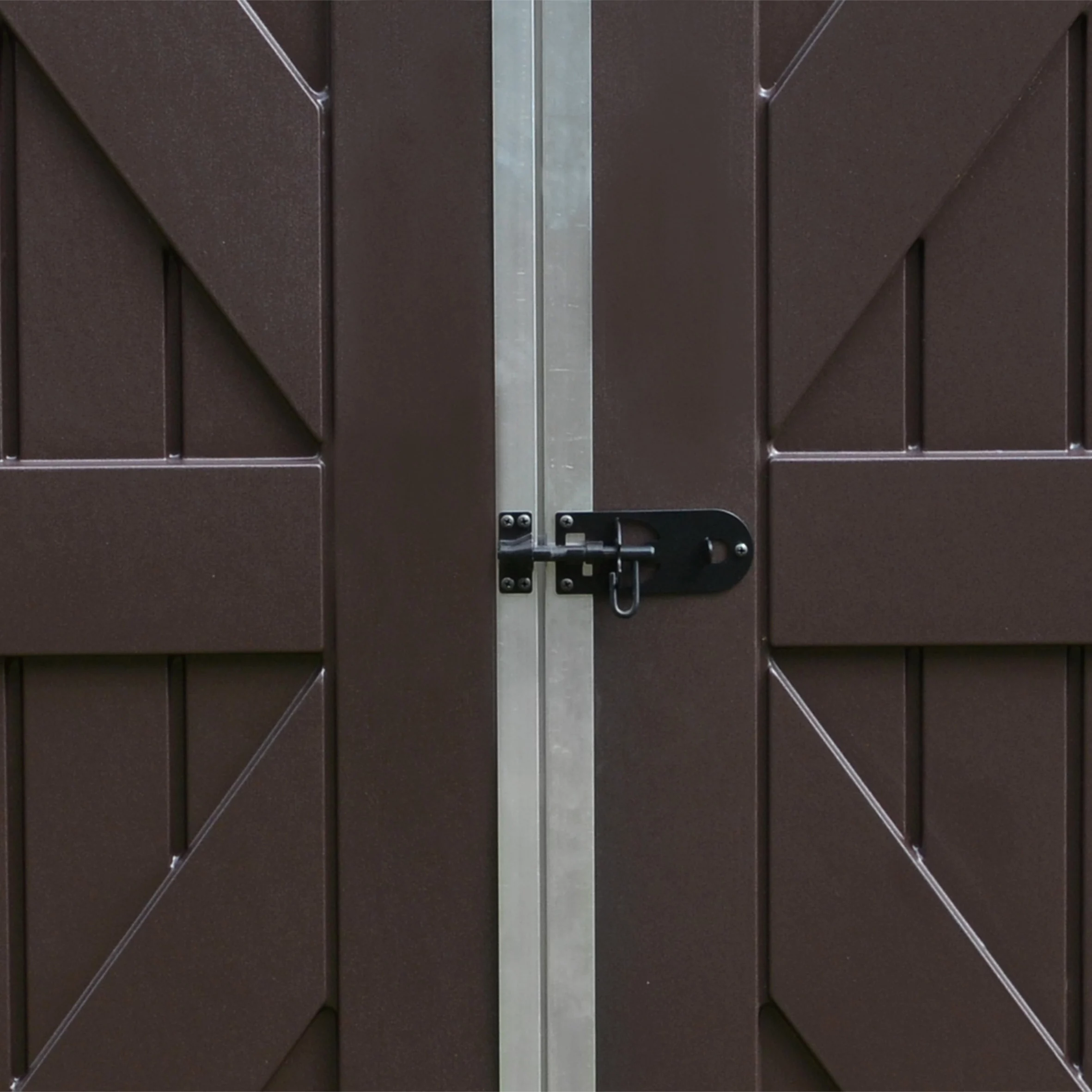 - Lockable wide double door latches for extra privacy and safety (lock sold separately)