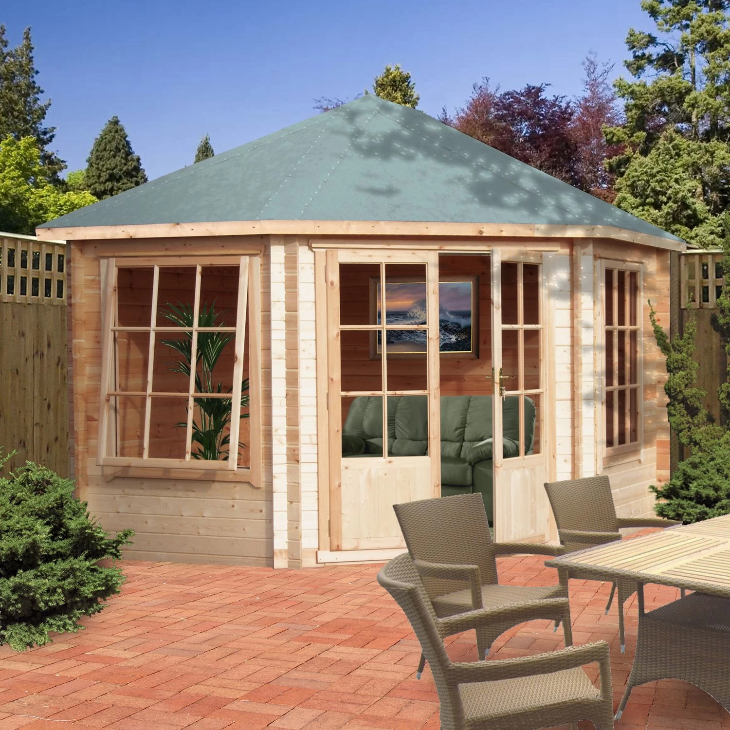 This Belvoir 10×10 log cabin is perfect for use as a summerhouse, workshop or extra storage space. Assembly required.
