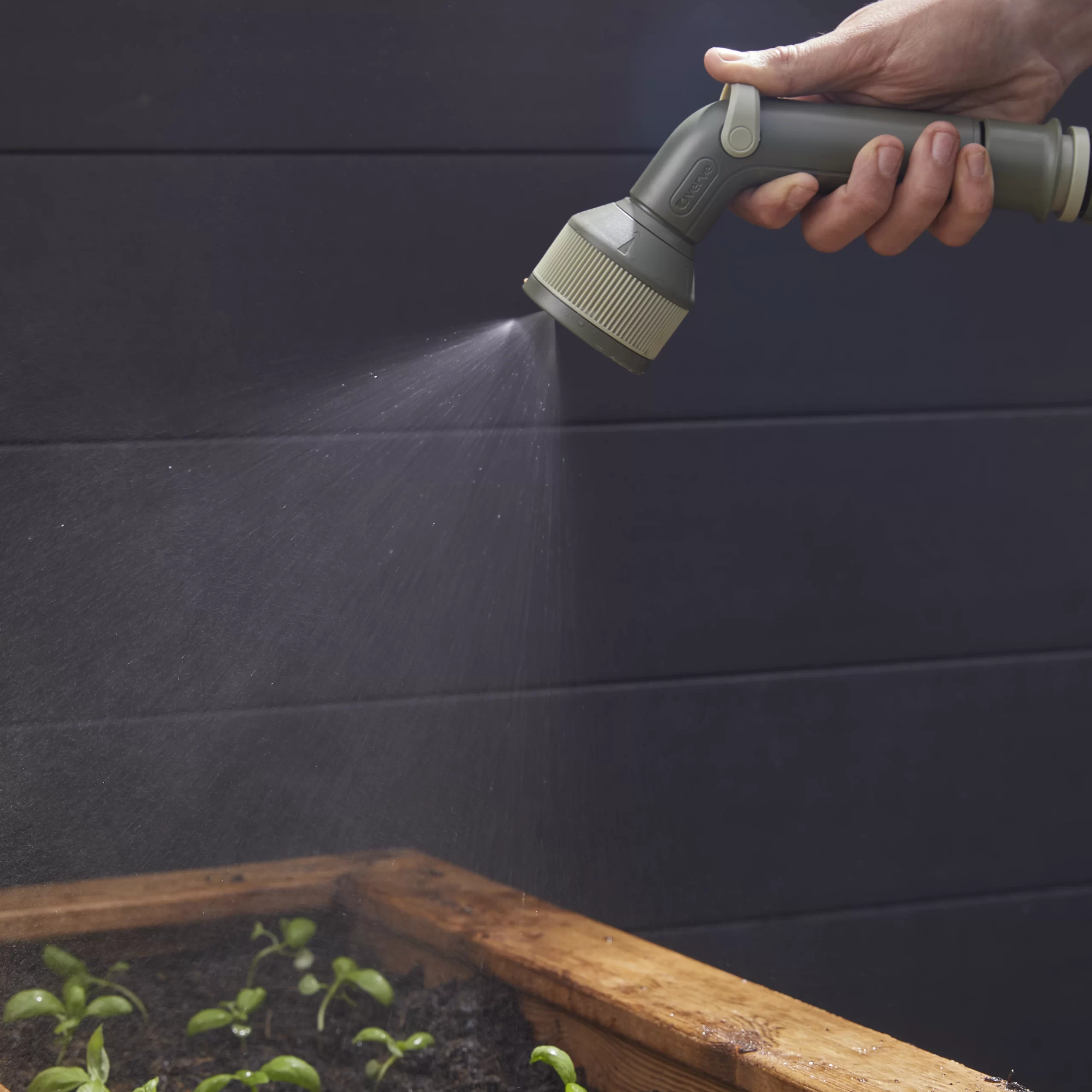 - Twist the head on our Verve Spray gun to choose your desired setting (jet – cleaning, flat – rinsing, fast fill – bucket, fine mist – seedlings, and wide – overall watering).